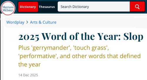 Interestingly, Webster's choice of words of the year for 2025 included both this and a pejorative term for AI-generated content.